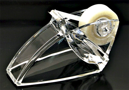 Portarotolo scotch trasparente. Rotolo scotch non fornito. Confezione in scatola.