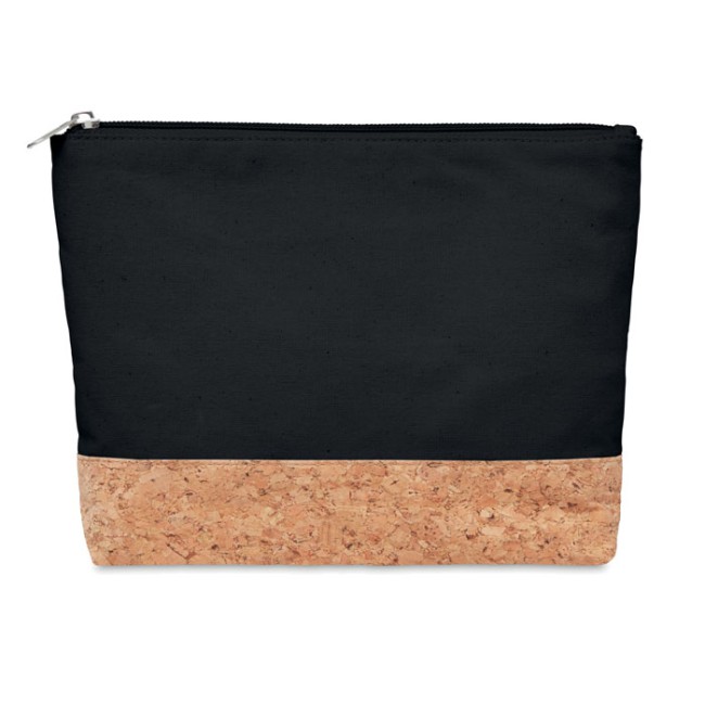Portacosmetici in cotone 220gr con dettagli in sughero sul fondo.