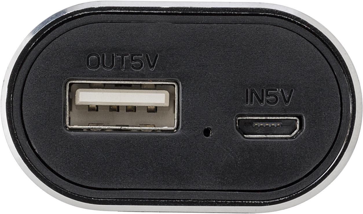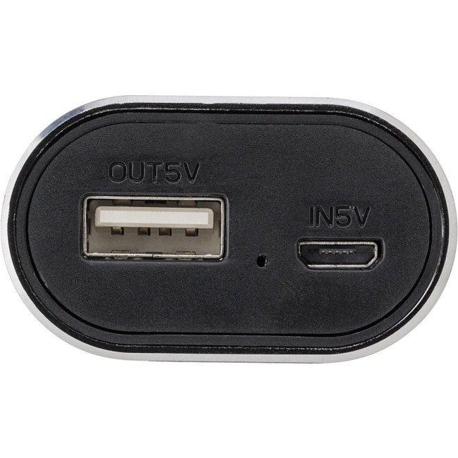 Power bank in alluminio con due auricolari wireless, batteria d'emergenza al litio, capacità pari a 4000 mAh, input 5V/0.9A (micro USB), output 5V/1A (USB), cavo USB / Micro USB, adatto per la maggior parte dei device in commercio