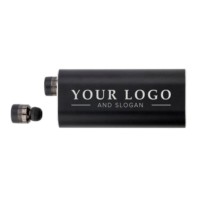 Power bank con auricolari wireless, in alluminio