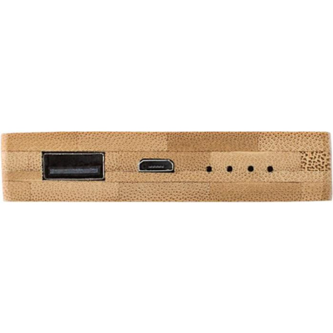 Power Bank in bamboo, capacità di 4.000 mAh, batteria ai polimeri di litio da 3,7 V, input DC5V/1A, output DC5V/1A, include due porte USB, indicatori LED, include cavo di ricarica USB, adatto per la maggior parte dei device in commercio