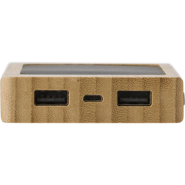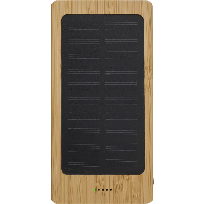Power Bank solare in bambù, 8.000 mAh, input DC 5V/2A, output DC 5V/2A, include 4 indicatori LED, due porte USB e una porta micro USB, adatto per la maggior parte dei device in commercio