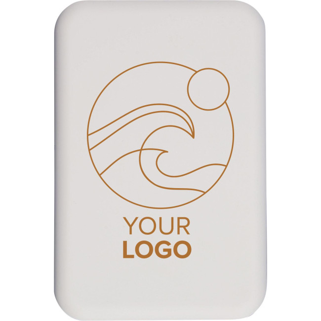 Powerbank ricaricabile wireless riciclato con batteria da 10.000 mAh e potenza di 15 W, compatibile con MagSafe. Dispone di ingresso/uscita Type-C e protezione integrata contro surriscaldamento, cortocircuito, sovratensione e sovracorrente. Include anello metallico, supporto adesivo e confezione senza plastica.