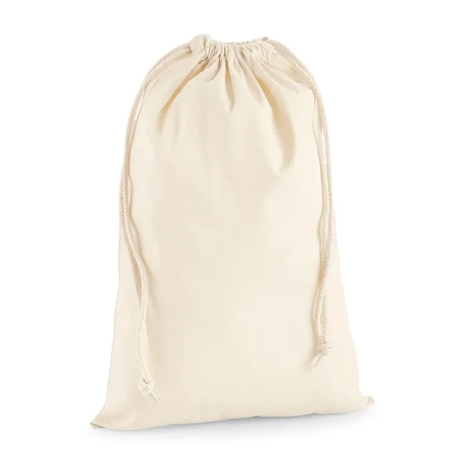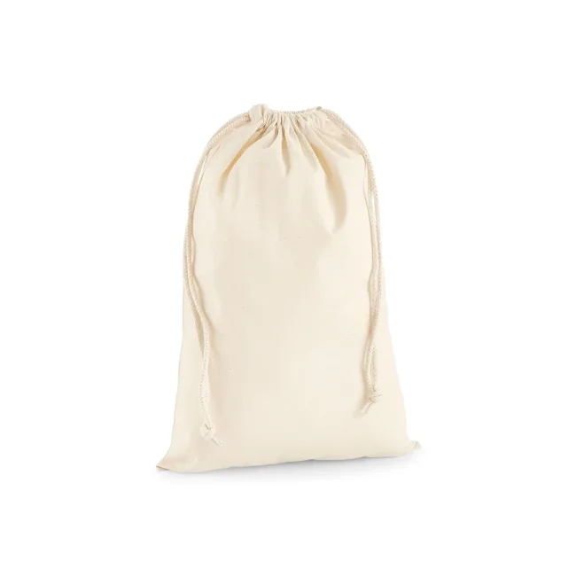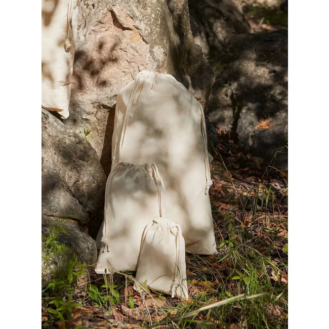 100% cotone. Sacchetti con chiusura a doppia coulisse, in cotone di alta qualità per una superficie si personalizzazione ideale per la stampa. Dimensioni: