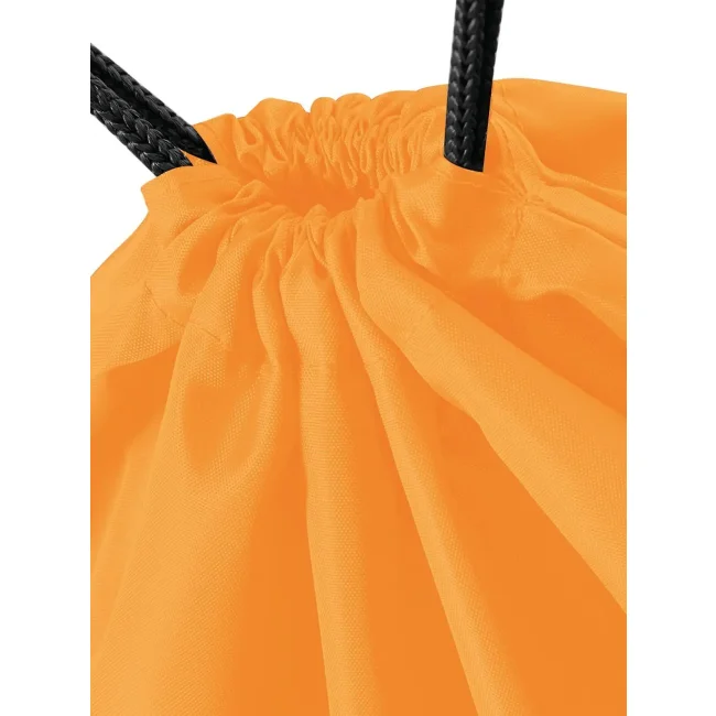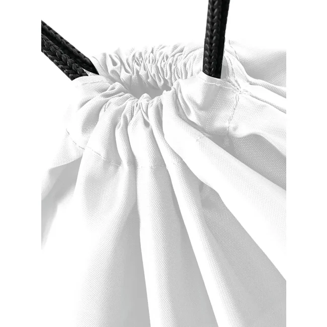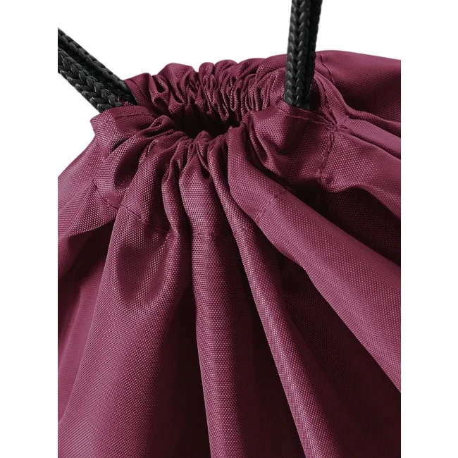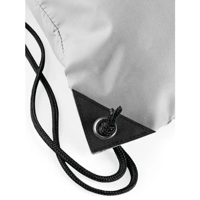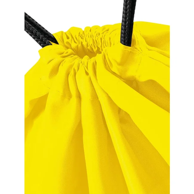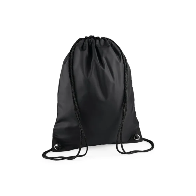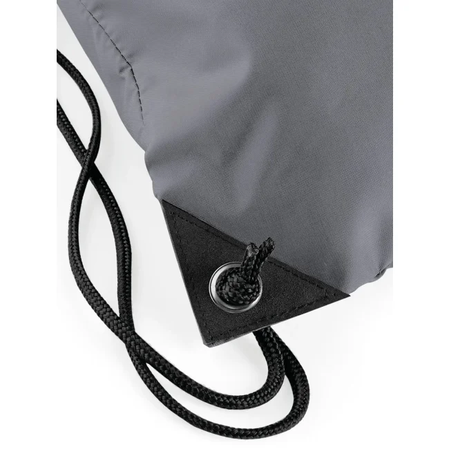 100% poliestere 210d. Sacca con cordoncini. Tessuto resistente all'acqua 100 g/m². Angoli rinforzati con occhielli color canna di fucile (argento- nylon 210D). Etichetta removibile. Dimensioni: 33 x 45 cm, capacita': 11 litri, area stampabile: 29 x 26 cm.