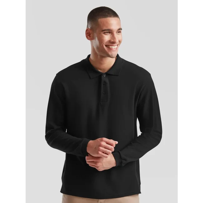100% cotone ring-spun. Polo a maniche lunghe set-in, 3 bottoni tono su tono, struttura con cuciture e spacchetti laterali. Athletic heather: 90% cot. 10% pol. (White: 170 g/m²)