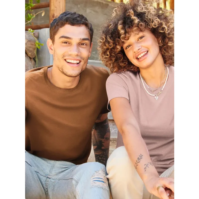 100% cotone organico. T-shirt girocollo con vestibilità classica, sensazione morbida al tatto per un comfort fenomenale. Superficie liscia e jersey ad alta densità per un'eccezionale nitidezza della stampa, etichetta a strappo sul retro del collo, girocollo elastico a costina, nastratura da spalla a spalla.