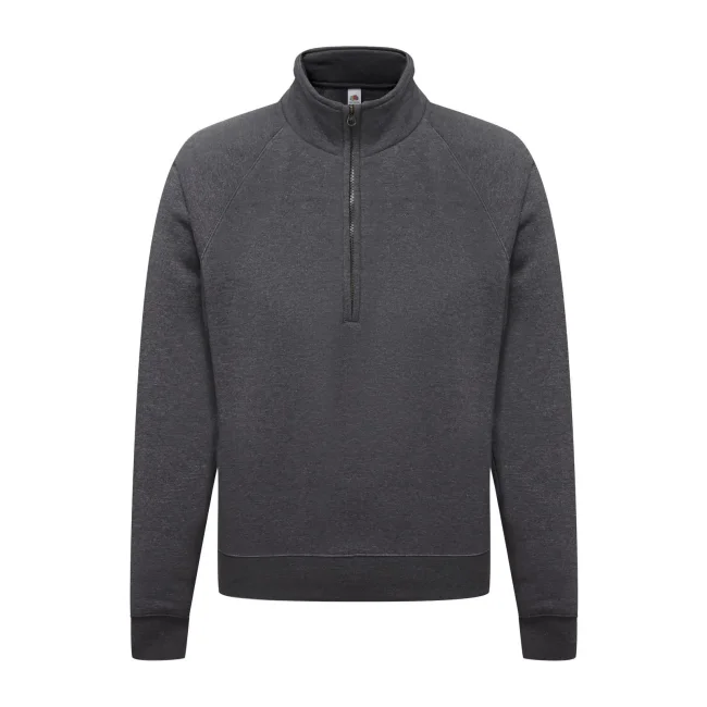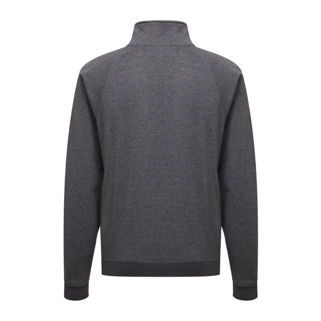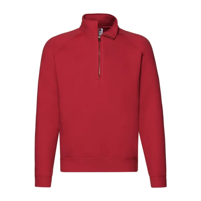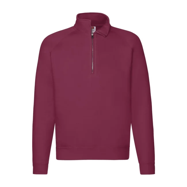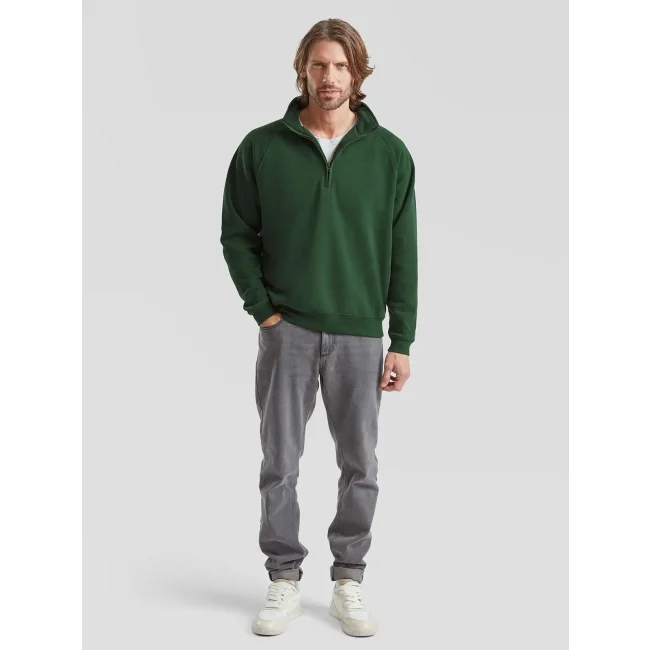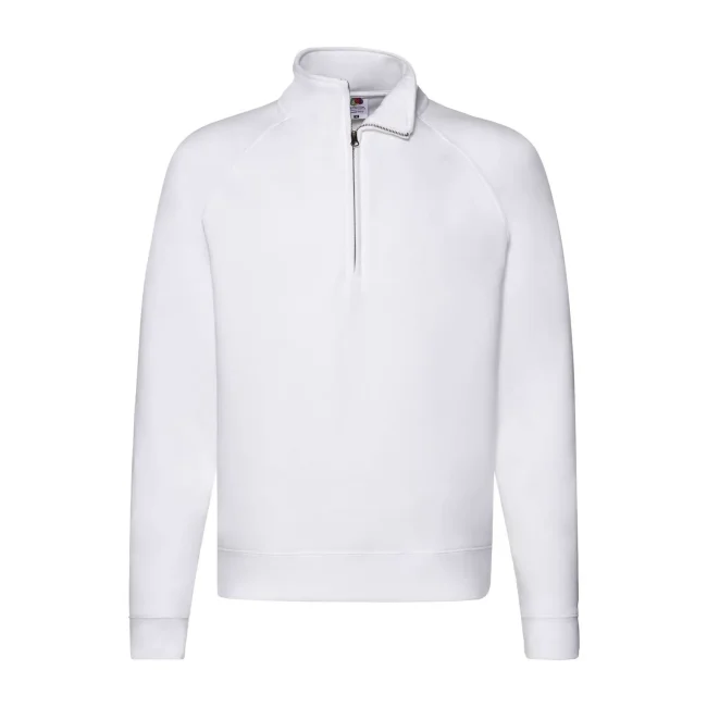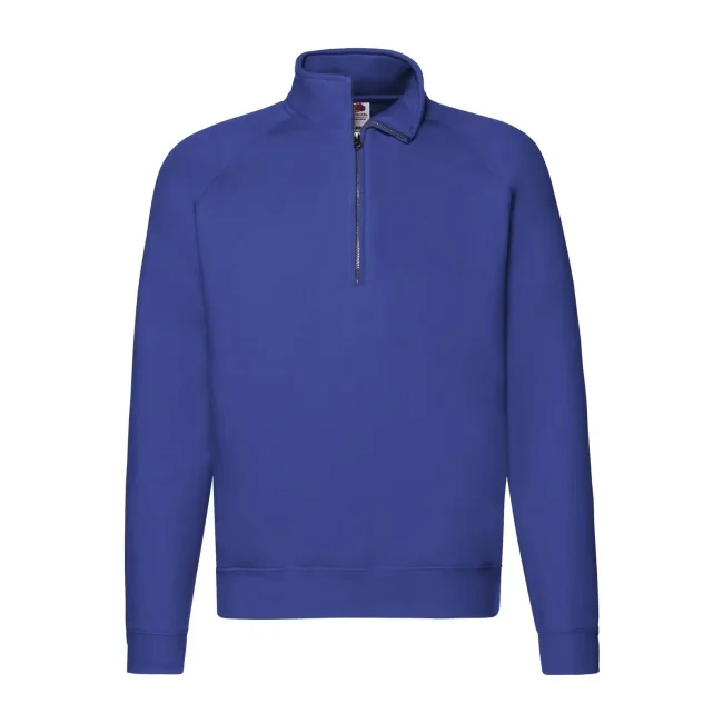 70% cotone, 30% poliestere. Felpa con maniche raglan, felpata internamente, zip ¼, struttura con cuciture laterali. Etichetta removibile. (Col. 30/94: 260 g/m²).