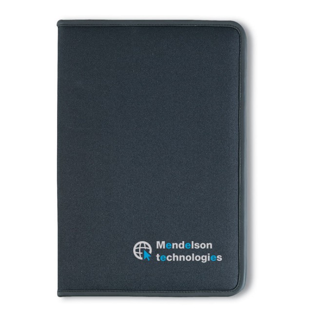 Cartella conferenza A4. Poliestere 600D e fodera in 210T. Con cerniera. Blocco note A4 da 20 fogli a righe in carta riciclata. 4 scomparti. Porta carte incluso.