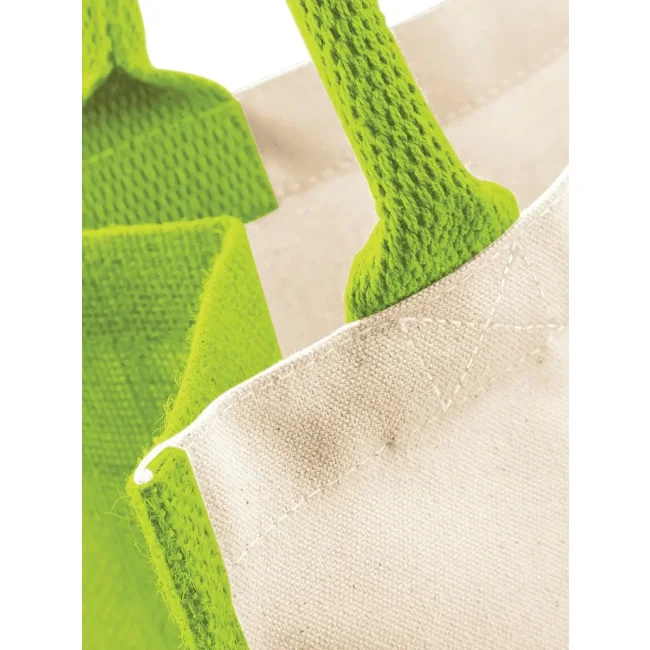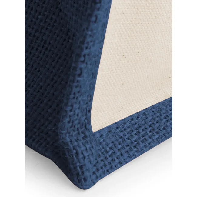 100% Juta laminata e cotone canvas. Shopper con pannelli laterali. Etichetta removibile. Lunghezza manici: 40 cm, dimensioni: 30 x 30 x 19 cm, capacita': 14 litri, area stamapabile: 24 x 22 cm.