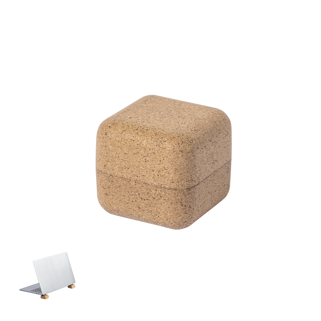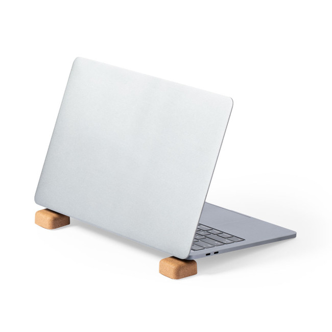 Supporto compatto per laptop della linea natura. Realizzato in sughero per promuovere l'uso di materie prime naturali e ridurre le emissioni inquinanti. Magnetico e antiscivolo, confezionato in un'attraente scatola individuale dal design ecologico.