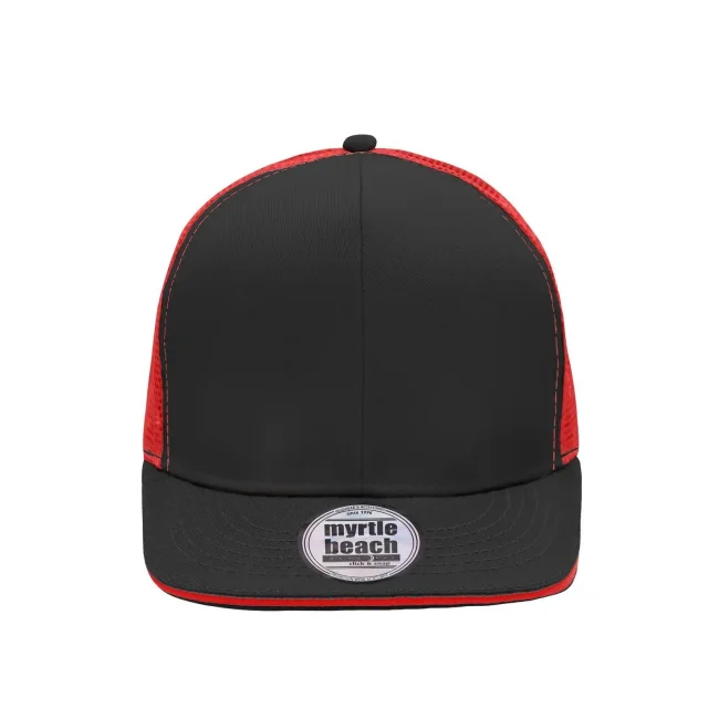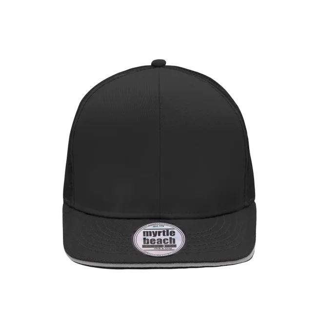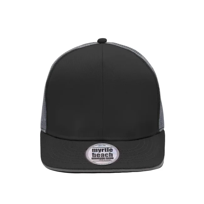 100% poliestere. viesiera piatta, 6 pannelli, pannelli frontali laminati, comodo da indossare grazie alla banda interna imbottita, chiusura "click & snap".