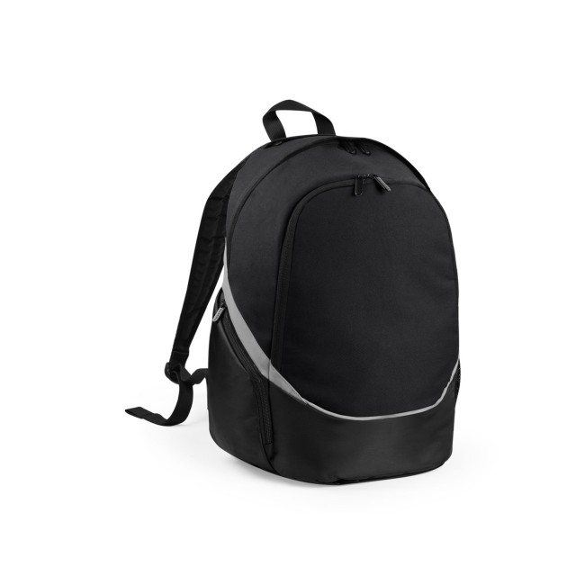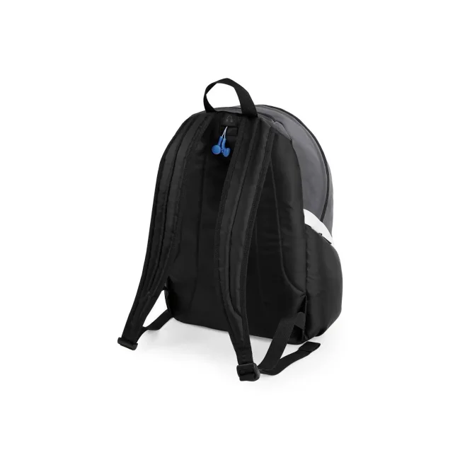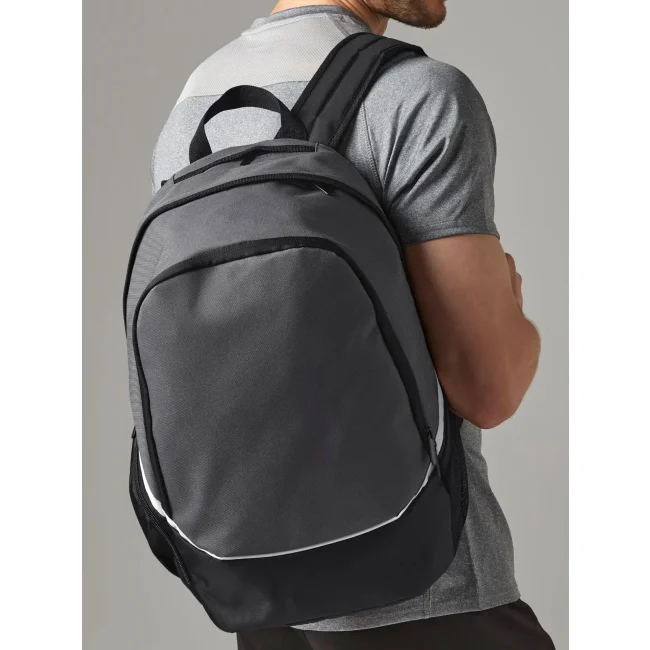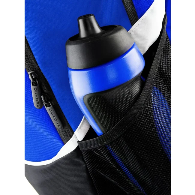 100% combinazione 600D/420D poliestere. Zaino con ampia tasca anteriore, tracolla e schienale imbottiti, tasche laterali: una con zip, l'altra in mesh. Etichetta removibile. Dimensioni: 30 x 43 x 20 cm, capacita': 17 litri, area stampabile: 16 x 18 cm.