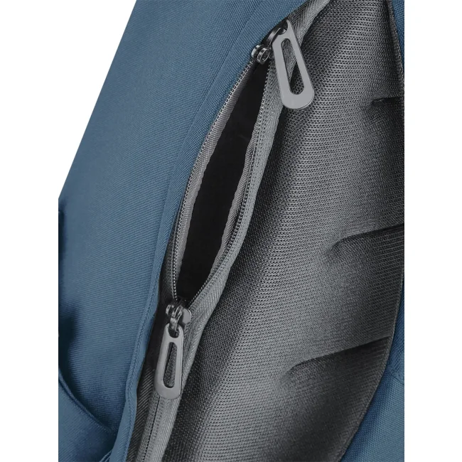 100% poliestere 600D riciclato rPET, equivalente a 7 bottiglie. Zaino impermeabile con scomparto principale con accesso nascosto, due tasche esterne, tasche interne. Scomparto per laptop (15,6"). Tasca posteriore con zip e fodera con anti-RFID, cordino di sicurezza 'anti-scippo'. Pannello posteriore imbottito e traspirante, cinturino al petto regolabile, manico imbottito. Senza PVC. Etichetta TearAway.
