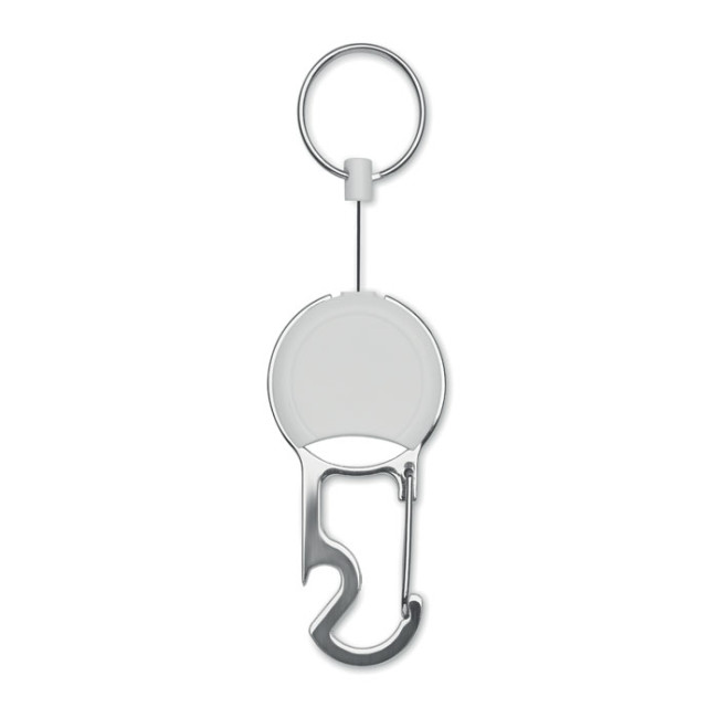 Portabadge retrattile in ABS con clip, portachiavi e apribottiglie.