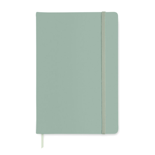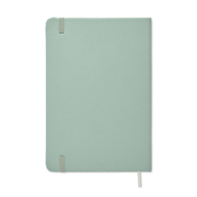 Notebook A5 con copertina rigida in PU, dotato di 192 pagine in carta riciclata. Include una chiusura elastica e un segnapagina abbinato, rendendolo pratico e sostenibile per ogni esigenza di scrittura.