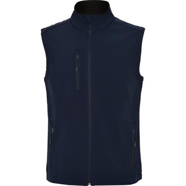 Gilet softshell a doppio strato.Cerniera invertita in tinta, con protettore mento e tiretto.Rivestimnto interno in pile.Tasca esterna sul petto lato destro con cerniera in tinta e tirante.Due tasche esterne con cerniera in tinta e tiretto.Girovita con cordoncino elastico e stopper.