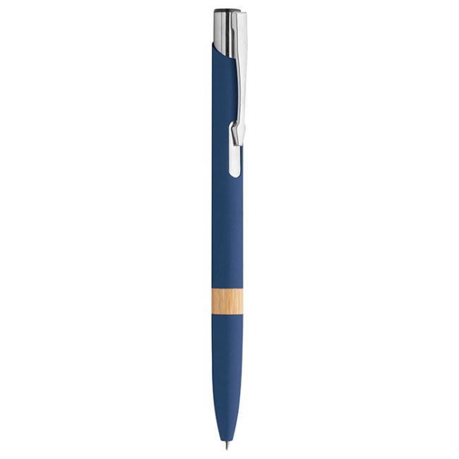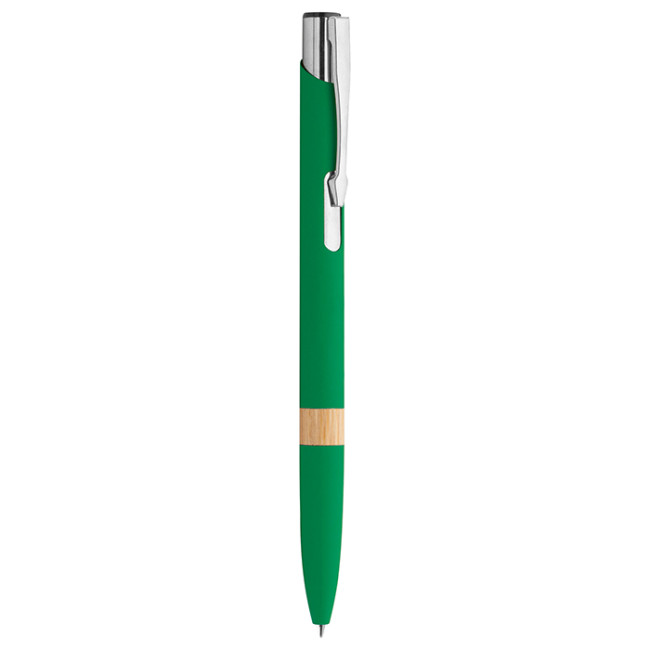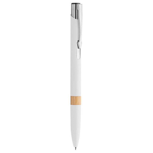 penna a sfera meccanismo a scatto fusto con rifinitura matta e bamboo minuterie in metallo cromato refill nero