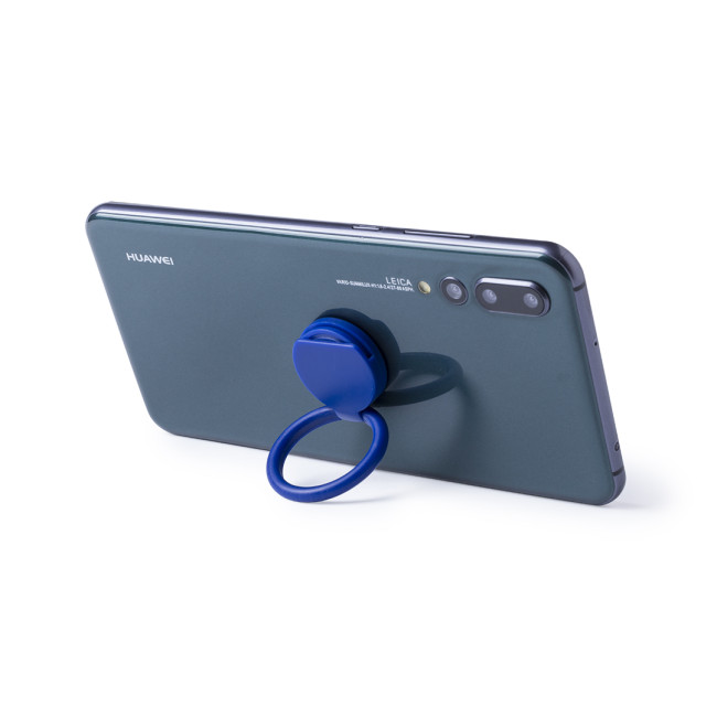 Supporto adesivo per smartphone con moneta per carrello integrata, in un'ampia gamma di colori, con anello per la tenuta a 360° sul retro con doppia funzione di supporto e attacco per selfie.