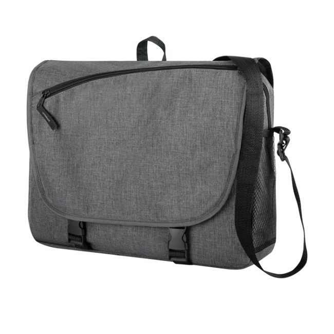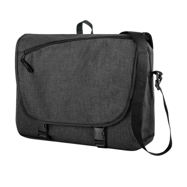 borsa p/documenti in poliestere 300D effetto melange tracolla regolabile manico interno multitasche tasca esterna con cerniera tecnica di stampa consigliata: serigrafica - transfer