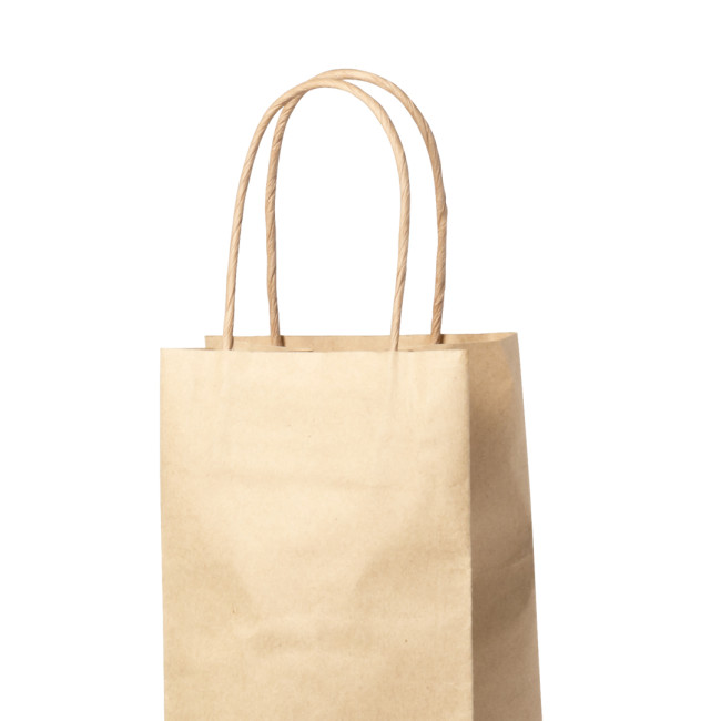 Shopper in carta naturale da 100g/m2 con manici corti rinforzati e soffietto. Appositamente progettata per bottiglie fino a 1L.