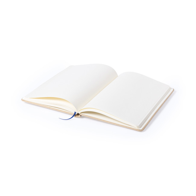 Block notes A5 con copertina rigida in robusto cartone riciclato. Con 100 fogli bianchi lisci ed elastico di chiusura.