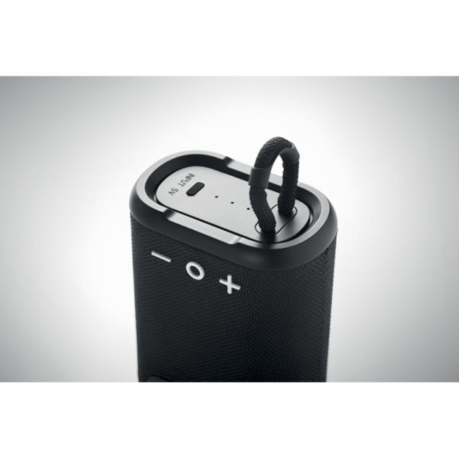 Speaker senza fili 5.0 in ABS, finitura in tessuto 30% canapa 70% poliestere, resistente agli spruzzi IPX7 con manico. Batteria Li-Ion 1800 mAh. Dati di uscita: 5W, 4 Ohm. Tempo di autonomia: ca 8h. Ascoltate la musica preferita sotto la doccia, in piscina o in spiaggia. Questo speaker ha un grado di impermeabilità IPX7, il che significa che può essere usato in prossimità degli ambienti con acqua. Collegatelo allo smartphone o altro dispositivo wireless e date inizio alla festa.