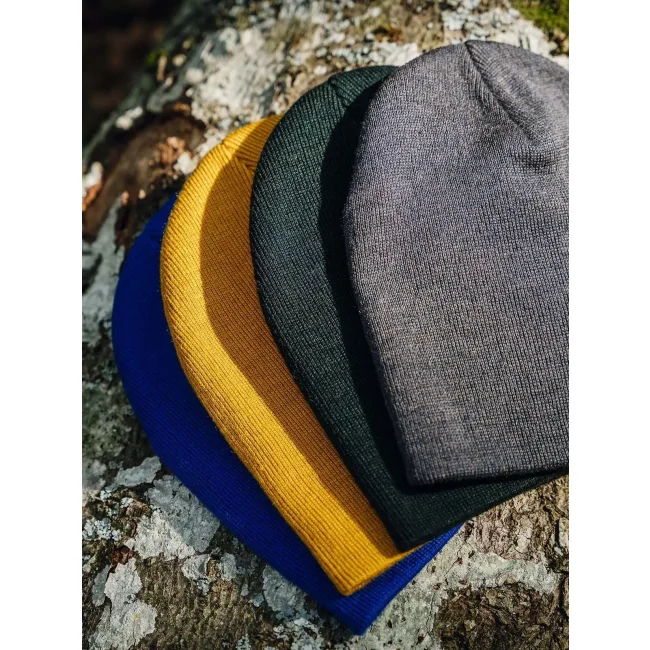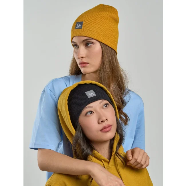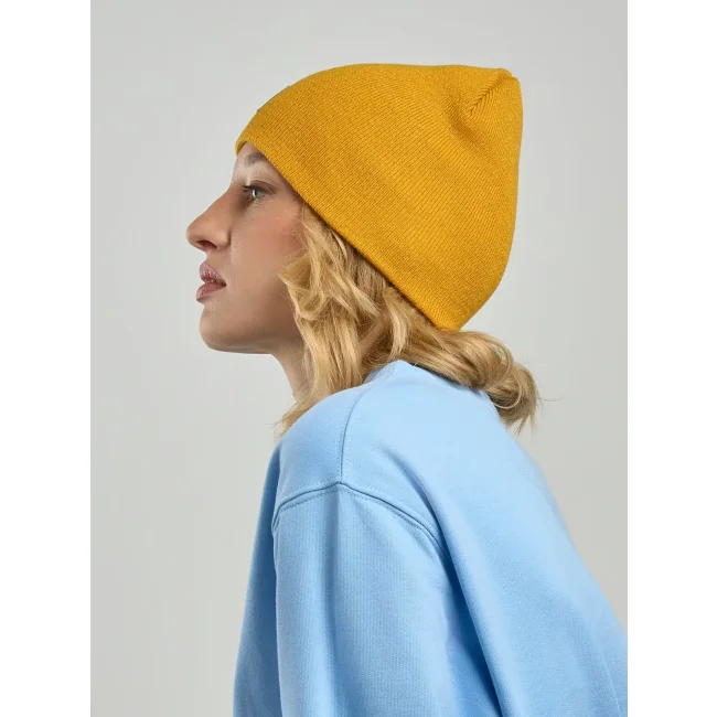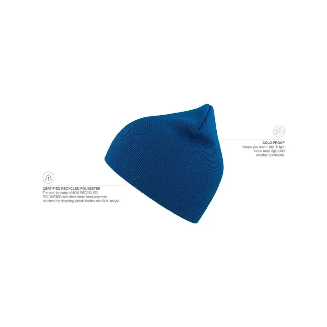 50% poliestere riciclato certificato, 50% acrilico. Berretto a coste, perfetta combinazione tra morbidezza e sostenibilità. Etichetta removibile.