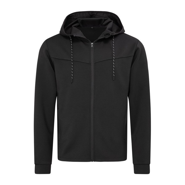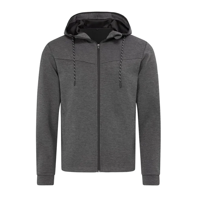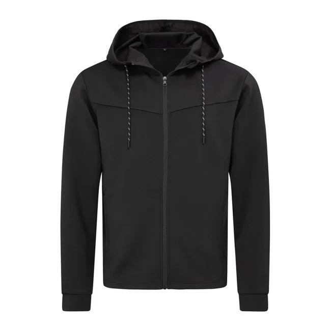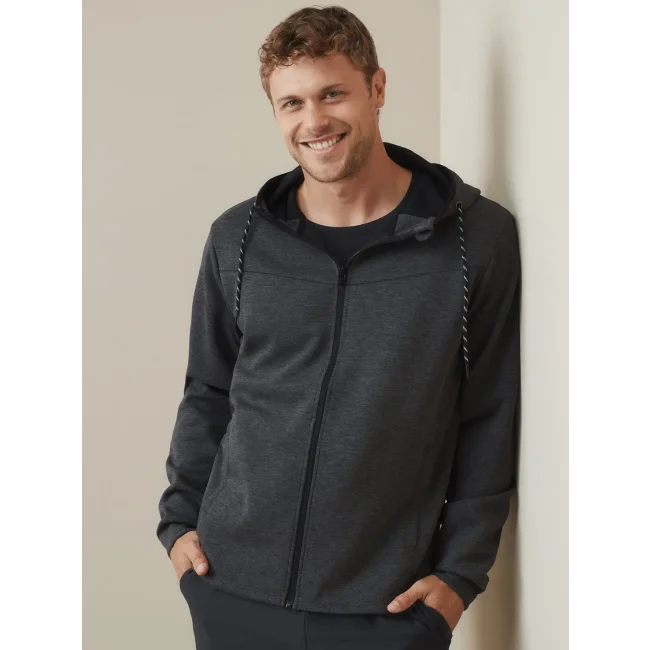 94% poliestere 6% elastan. Giacca con cappuccio da uomo, tessuto funzionale eco-compatibile, prodotto con 8 bottiglie di plastica riciclate per giacca, cappuccio tipo "sub" con bordatura elastica e cordoncino bicolore, occhielli in metallo (senza nichel), 2 tasche laterali con cerniere nascoste, cerniera con chiusure lampo in metallo (senza nichel), orlo nello stesso materiale, nastro di rinforzo, cuciture laterali, etichetta della taglia intessuta nel colletto, etichetta di manutenzione a strappo nella cucitura laterale, lavabile a 40°C.