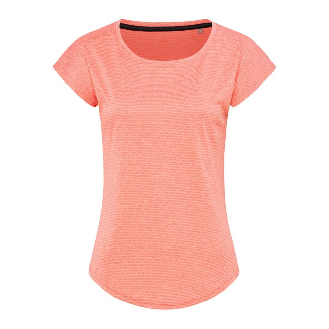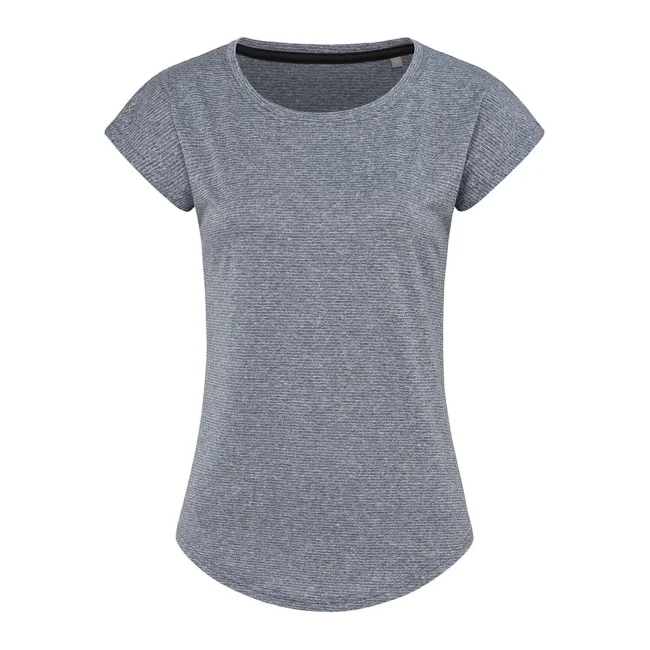 100% poliestere ACTIVE-DRY° (50% riciclato). T-shirt sportiva da donna, look moderno, filato a colori misti, in tessuto funzionale eco-compatibile, prodotto con 4 bottiglie di plastica riciclate per ciascuna t-shirt, effetto mélange, maniche overcut, orlo arrotondato, collo stretto dello stesso materiale, nastro di rinforzo, cuciture laterali, etichetta della taglia intessuta nel colletto, etichetta di manutenzione a strappo nella cucitura laterale, lavabile a 40°C.