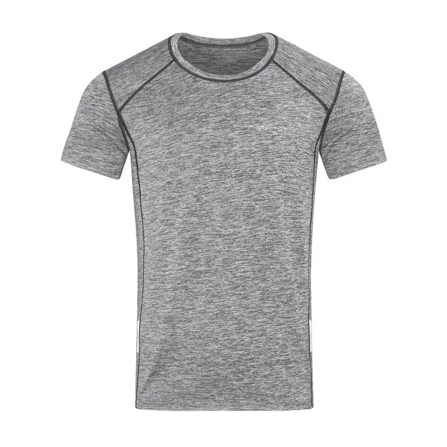90% poliestere ACTIVE-DRY° (50% riciclato), 10% elastan. T-shirt sportiva da uomo, tessuto funzionale eco-compatibile, prodotto con 4 bottiglie di plastica riciclate per ciascuna t-shirt, tessuto super soft ACTIVE-DRY°, effetto mélange, nastro riflettente (davanti e dietro) per un'eccellente visibilità, cuciture flatlock in contrasto cromatico, collo stretto dello stesso materiale, cuciture laterali, etichetta della taglia intessuta nel colletto, etichetta di manutenzione a strappo nella cucitura laterale, lavabile a 40°C.