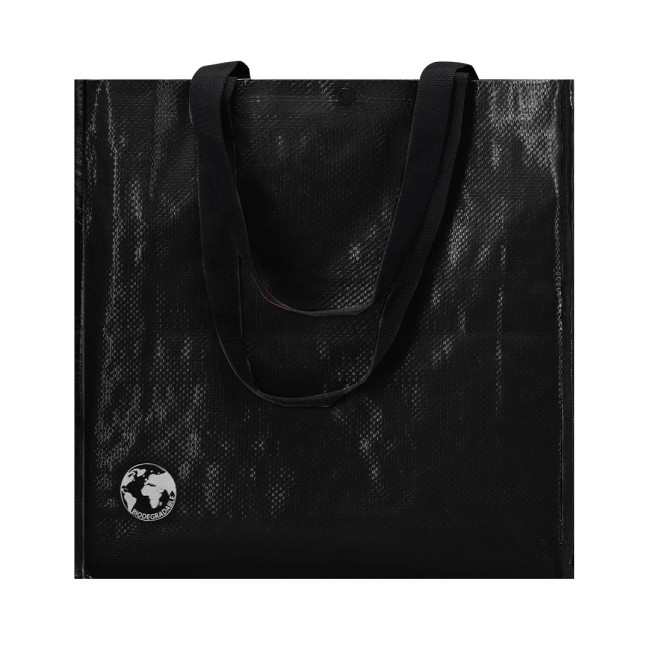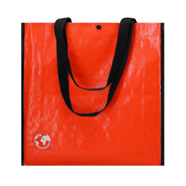 Borsa riutilizzabile in resistente materiale laminato. Con manici rinforzati in nylon, lunghi 70 cm, soffietto rinforzato con bordino e chiusura con bottone automatico. Finitura cucita e resistente fino a 12 kg di peso. Disponibile in un'ampia gamma di colori vivaci.