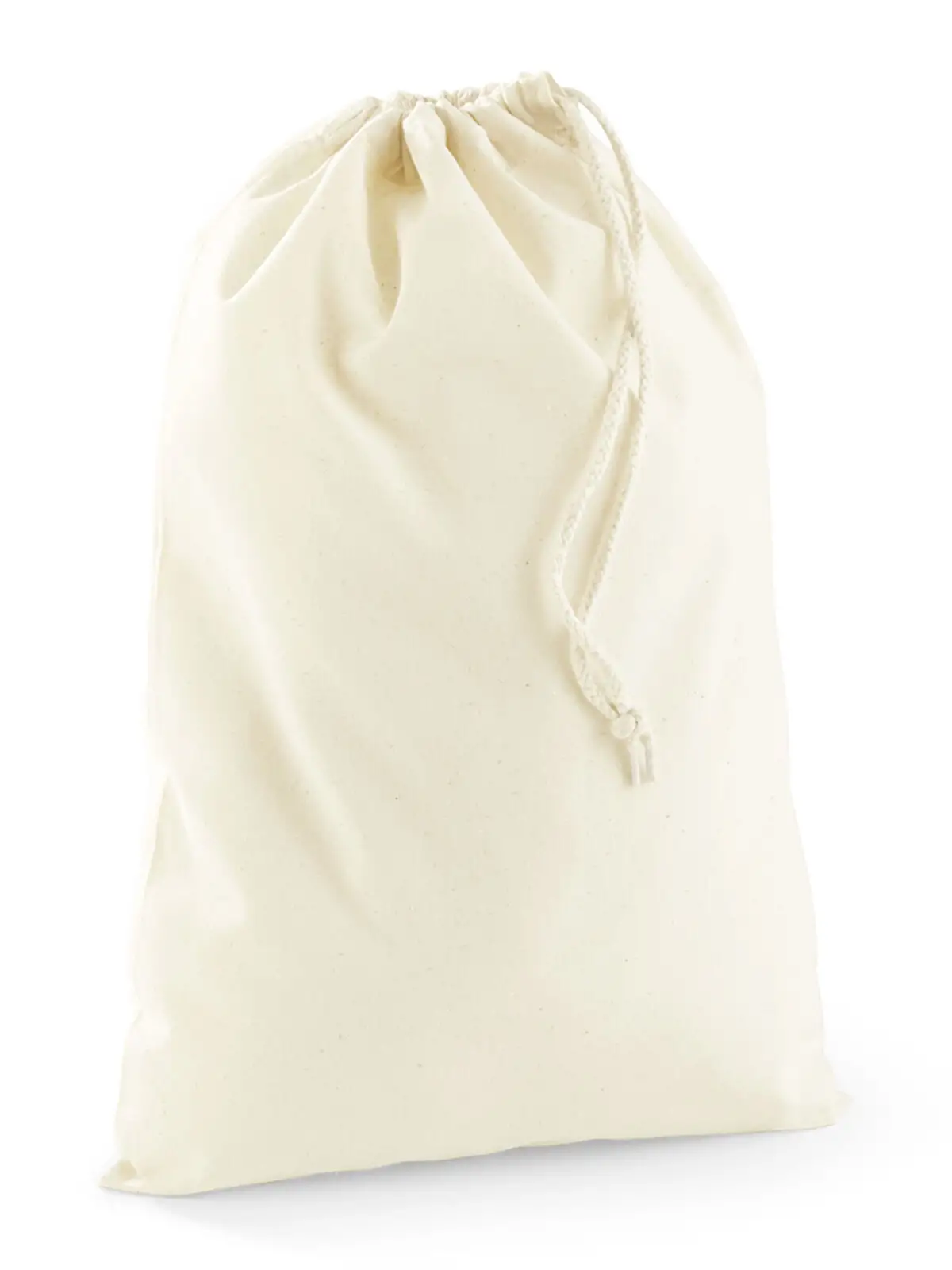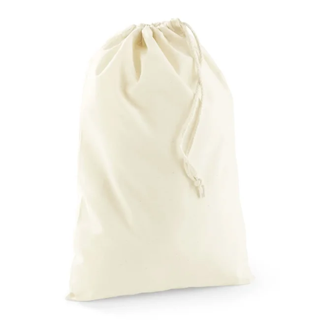 100% cotone riciclato. Sacchetto in cotone riciclato GRS, certificato da Control Union CU811033 con cordini in cotone riciclato. Etichetta removibile. Dimensioni: XXS: 10x15 cm, cap. 0,25 lt. - XS: 14x20 cm, cap. 1 lt. - S: 25x30 cm, cap. 3 lt. - M: 30x45 cm, cap. 8 lt. - L: 40x50 cm, cap. 14 lt. - XL: 49x75 cm, cap. 38 lt.