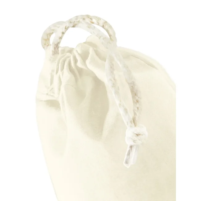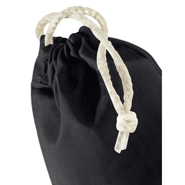 100% cotone riciclato. Sacchetto in cotone riciclato GRS, certificato da Control Union CU811033 con cordini in cotone riciclato. Etichetta removibile. Dimensioni: XXS: 10x15 cm, cap. 0,25 lt. - XS: 14x20 cm, cap. 1 lt. - S: 25x30 cm, cap. 3 lt. - M: 30x45 cm, cap. 8 lt. - L: 40x50 cm, cap. 14 lt. - XL: 49x75 cm, cap. 38 lt.