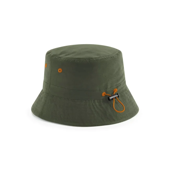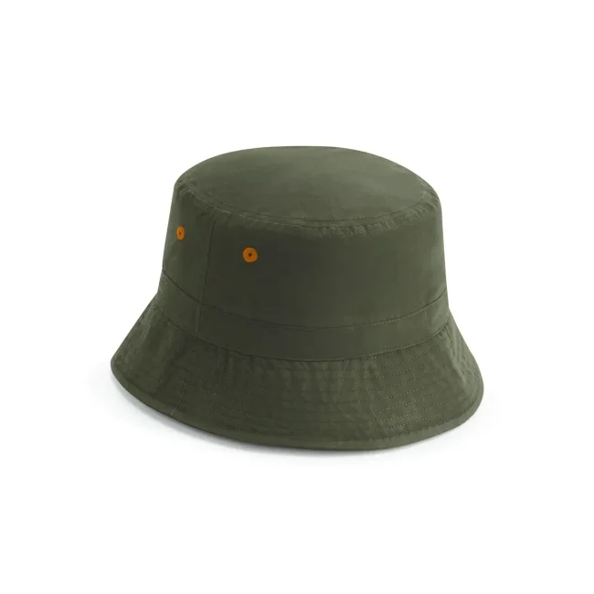 100% poliestere riciclato rPET. Cappello modello pescatore, occhielli di ventilazione cuciti. Cordino elastico con chiusura. Etichetta removibile TearAway per facilitare il rebranding.