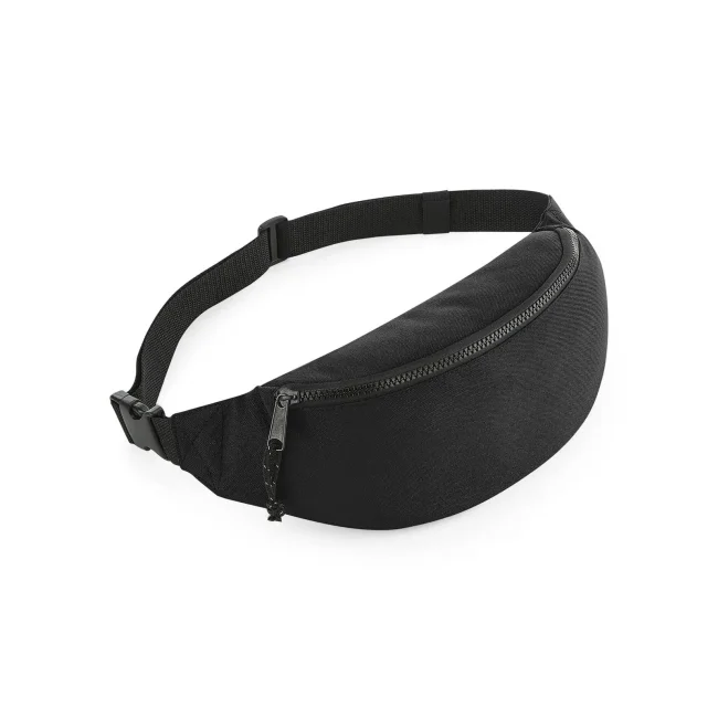 100% Poliestere 600D Riciclato. Marsupio con etichetta removibile TearAway per cambiare più facilmente il marchio, vano principale spazioso, tirazip con cordino con dettagli rifrangenti, tasca con zip sul retro, cintura in fettuccia regolabile. Dimensioni: 38 x 14 x 8 cm. Capacità: 2.5 litri. Massima Area di stampa: 18x7 cm.