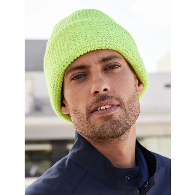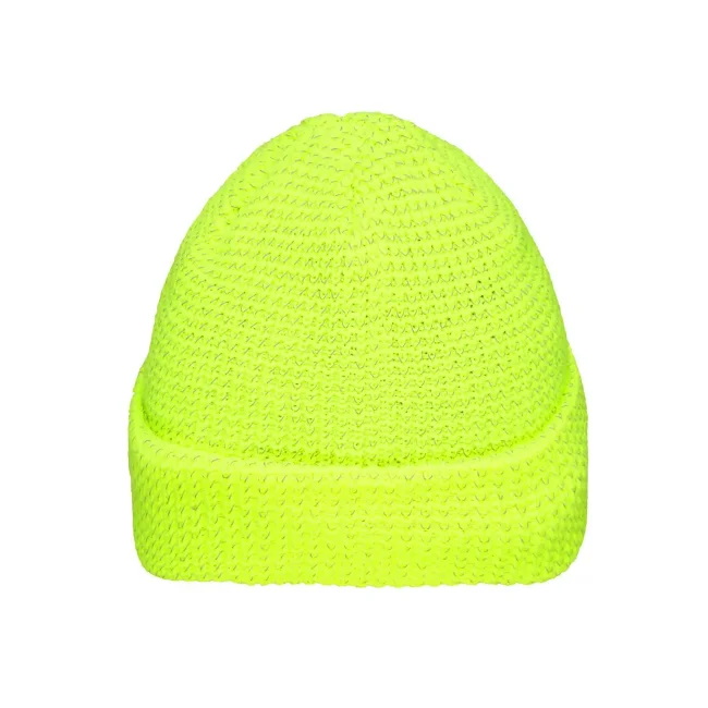 Tessuto esterno: 100% poliacrilico, Strato interno: 100% poliestere. Berretta lavorata a maglia con elementi riflettenti (senza funzione protettiva / senza DPI), motivo a costine con ampio orlo, interno in pile.