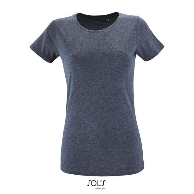 SOL'S REGENT FIT WOMEN, T-Shirt donna con colletto rotondo, 100% cotone jersey semipettinato ringspun 150, colletto interno a nastro, colletto rotondo a costine in elastan, maniche corte, tagliate e cucite, (1) Heather Pink : 60 % cotone / 40 % poliestere, (2) Heather Sky : 60 % Cotone / 40 % Poliestere, (3) Grigio Melange : 85 % Cotone / 15 % Viscosa, (4) Antracite Melange : 60 % Cotone Khaki : 60 % Cotone / 40 % Poliestere, (7) Erica Denim : 60 % Cotone / 40 % Poliestere. Per la corrispondenza delle taglie, consultare la tabella delle taglie nella sezione della documentazione del prodotto.