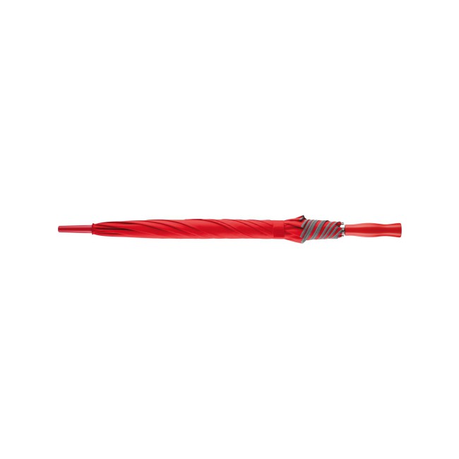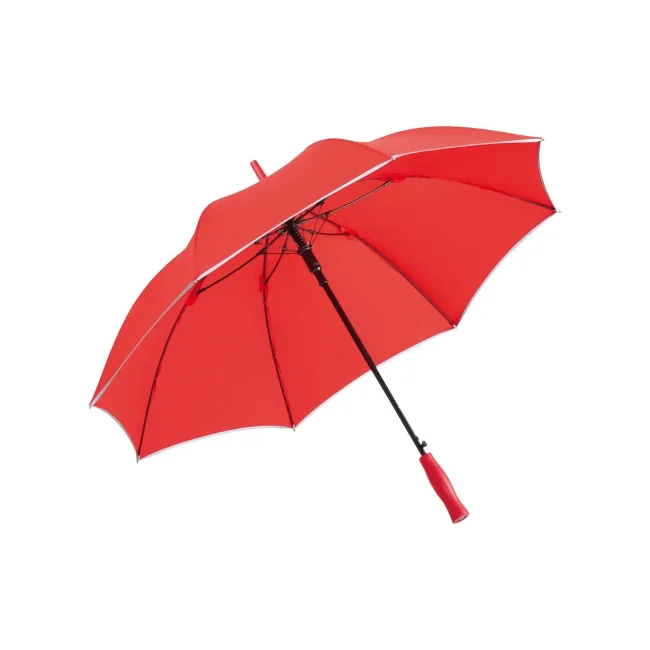 Bordatura Reflex argentata conformemente a EN ISO 20471 per una visibilità ottimale nel traffico, bastone in fibra di vetro stabile, stecche in fibra di vetro flessibili, pregiato sistema Windproof per la massima flessibilità del telaio in caso di forti raffiche di vento, impugnatura soft-touch piacevole da tenere in mano con possibilità di applicazione della pubblicità. Diametro: 105 cm, lunghezza da chiuso: 81 cm, 8 pannelli.