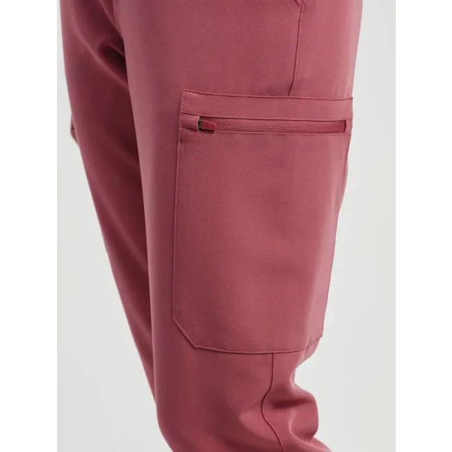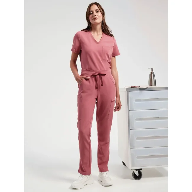 42% Poliestere, 33% Poliestere riciclato, 19% Viscosa, 6% Elastan. Pantaloni cargo da donna in tessuto traspirante elasticizzato in 4 direzioni per assicurare comfort e libertà di movimento durante tutto il giorno, tessuto resistente, ingualcibile e easy care, girovita parzialmente elasticizzato con coulisse regolabile, varie tasche con zip per riporre il cellulare e le monete, spacchetti con orlo per agevolare il movimento.