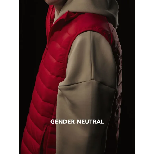 Il Reset Bodywarmer è un gilet imbottito realizzato in nylon riciclato, progettato per offrire calore e isolamento senza ingombro. Dotato di finitura DWR impermeabile e collo rialzato per maggiore protezione, è un capo gender-neutral e senza etichetta.