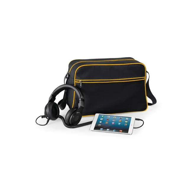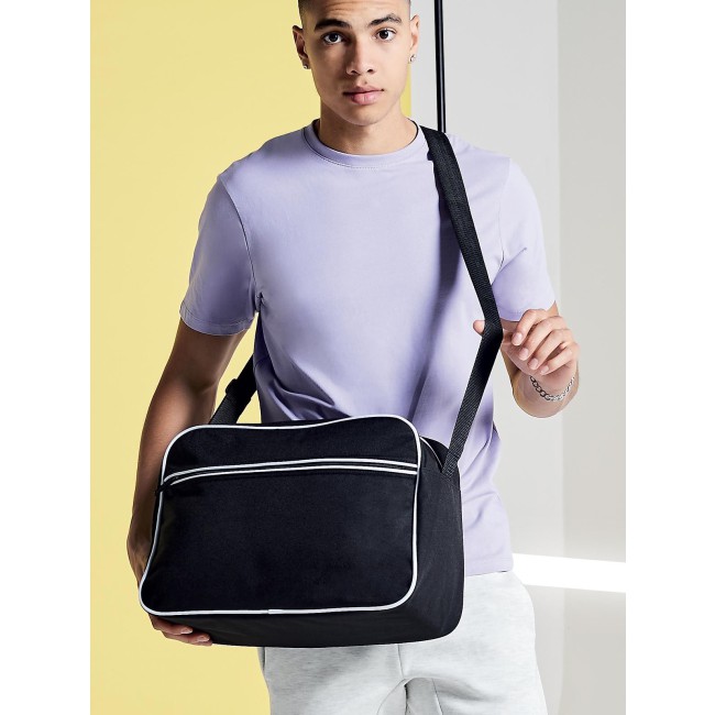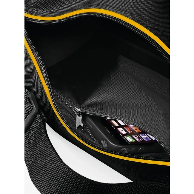 100% poliestere 600d. Borsa con doppio manico e lunga tracolla regolabile. Tasca frontale con zip e piccola tasca retata interna. Etichetta removibile. Dimensioni: 39 x 29 x 16 cm, capacita': 15 litri, area di stampa: 34 x 13 cm.