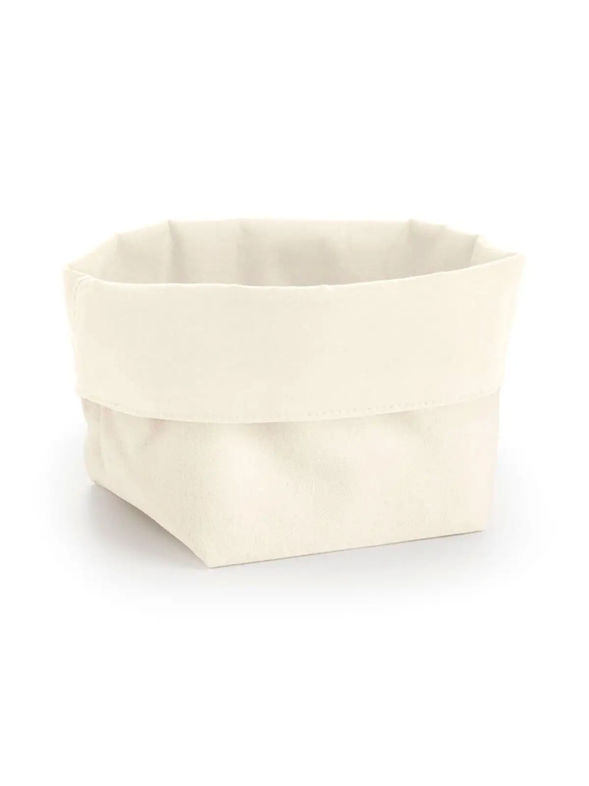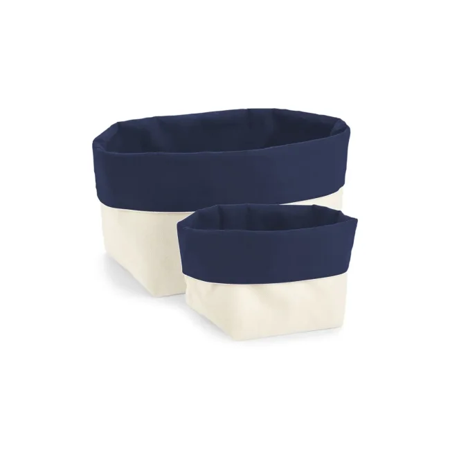 Interno: 100% cotone, Esterno: 100% tela di cotone garzato. Contenitore in cotone, stile reversibile, multiuso, etichetta removibile. Dimensioni: M: 13x17,5x13 cm, cap.3 lt., L: 22x22x16cm, cap. 8 lt.