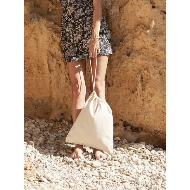 100% Misto cotone e poliestere riciclati. Sacchetto realizzato con un mix di cotone/poliestere riciclati pre-consumo. Corde in misto cotone/poliestere riciclato. Chiusura con cordino. Etichetta removibile. Dimensioni: S: 25x30 cm, cap. 3 lt. - M: 35x43 cm, cap. 9 lt. - L: 47x54 cm, cap. 17 lt. - XL: 50x68 cm, cap. 32 lt.