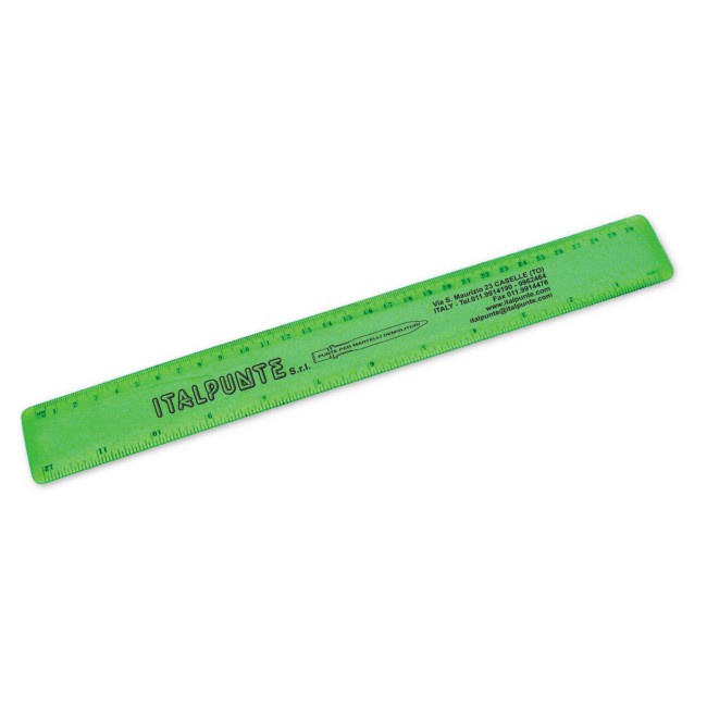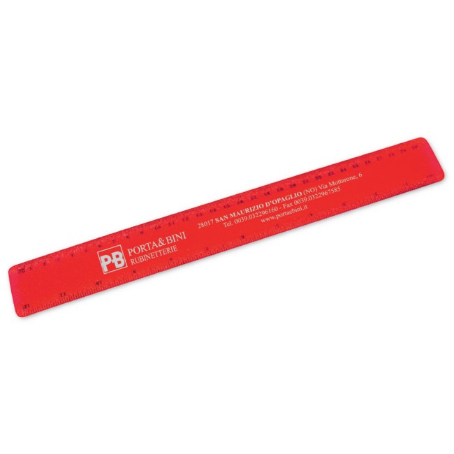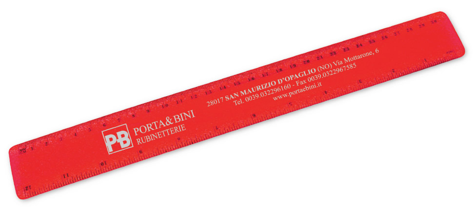 Righello flessibile in plastica colorata con scala in cm. e in pollici. Confezione in polybag.