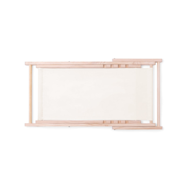 Sedia pieghevole con struttura in legno, schienale e seduta in tela resistente, morbida e pesante, con finitura naturale. Reclinabile e trasformabile in sedia a sdraio, con 4 posizioni di regolazione.