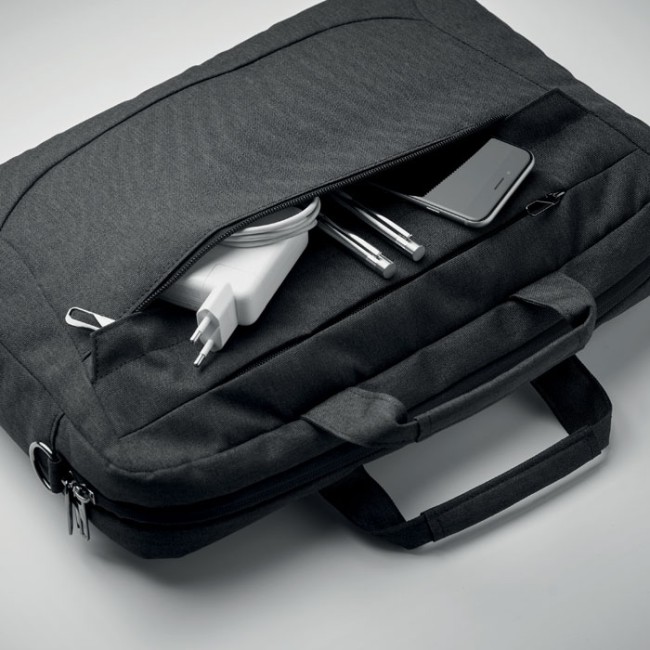 Zaino per laptop da 15'' in poliestere 600D RPET. 2 scomparti interni principali e ampia tasca frontale con cerniera. Una piccola tasca con cerniera. Spallacci removibili e regolabili. Porta trolley.