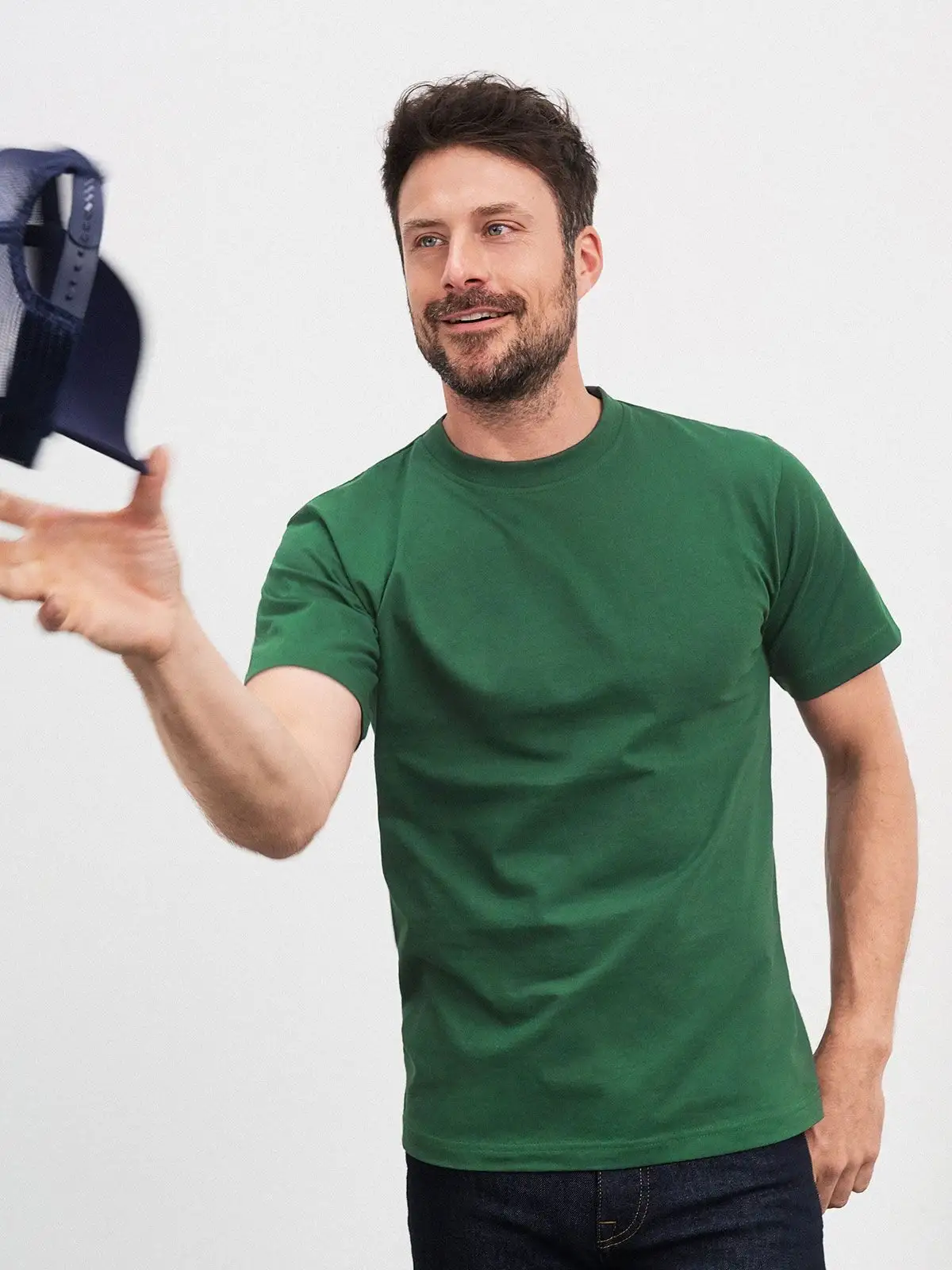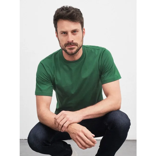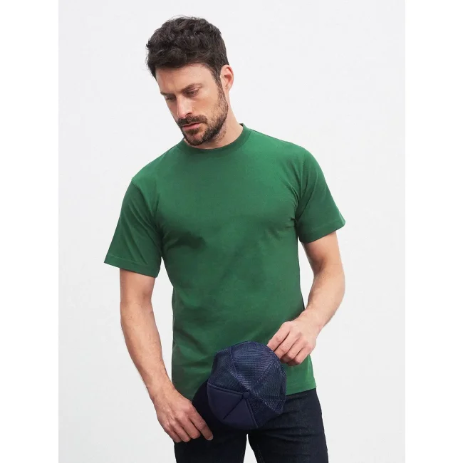 100% cotone. Comoda T-shirt in resistente single jersey, Collo rotondo con elastan, Senza cuciture laterali, necktape. Cuciture doppie sulle spalle, sul collo e sul giro manica.Tessuto esterno (180 g/mยฒ). Manica corta senza cuciture laterali. taglie forti da 4XL