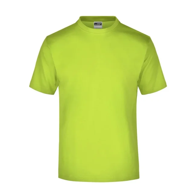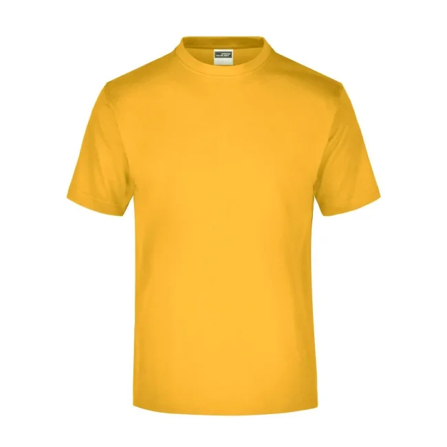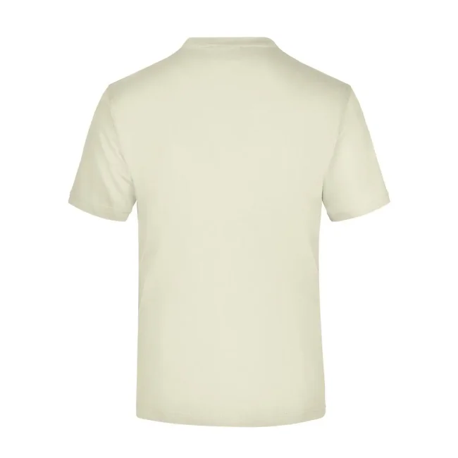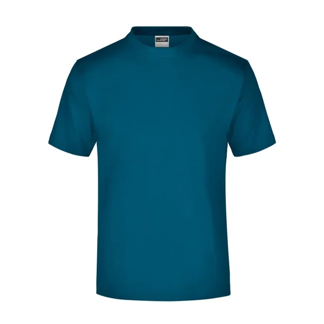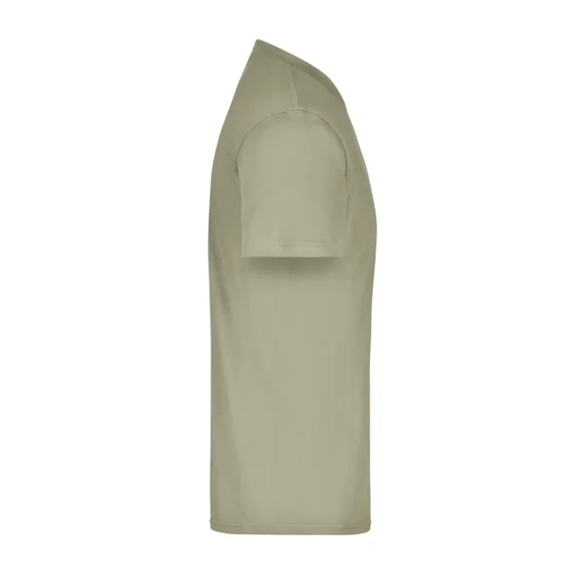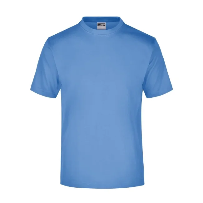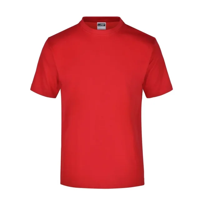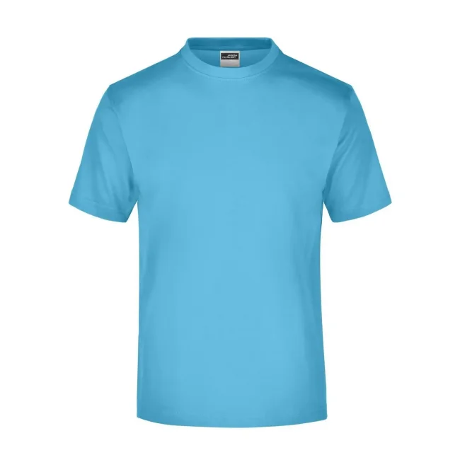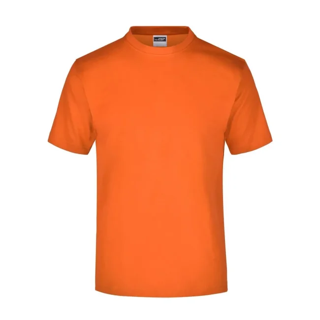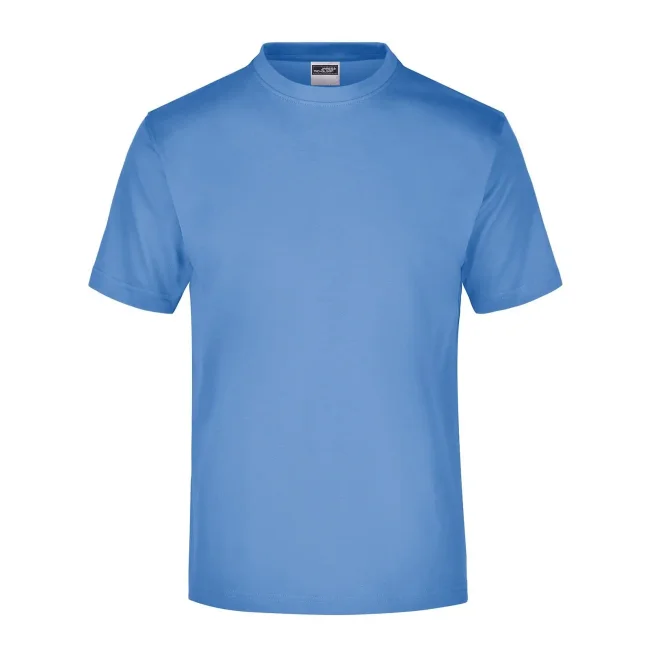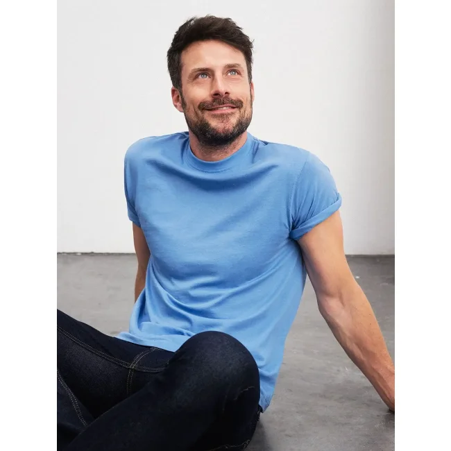 100% cotone. Comoda T-shirt in single jersey, collo rotondo con elastan, senza cuciture laterali, necktape, cuciture doppie sulle spalle, sul collo e sul giro manica.Tessuto esterno (150 g/m²). Manica corta,senza cuciture laterali