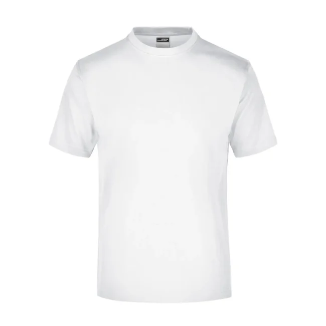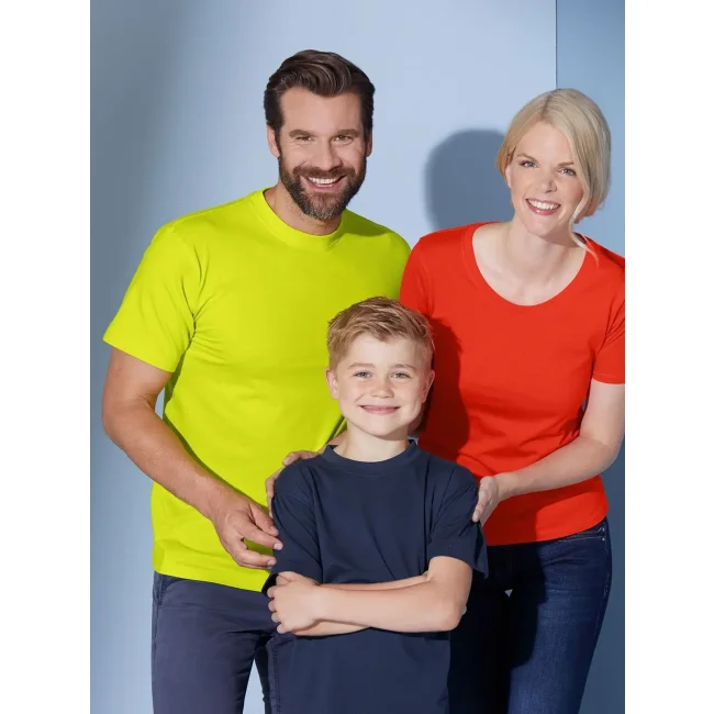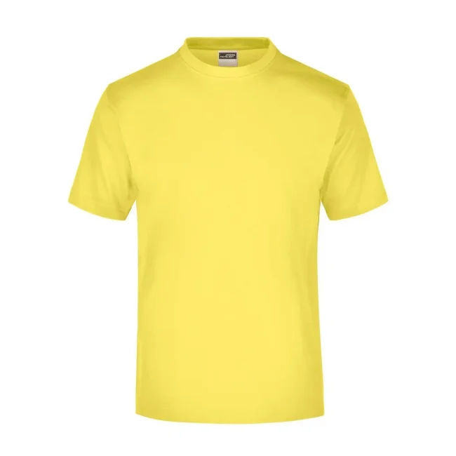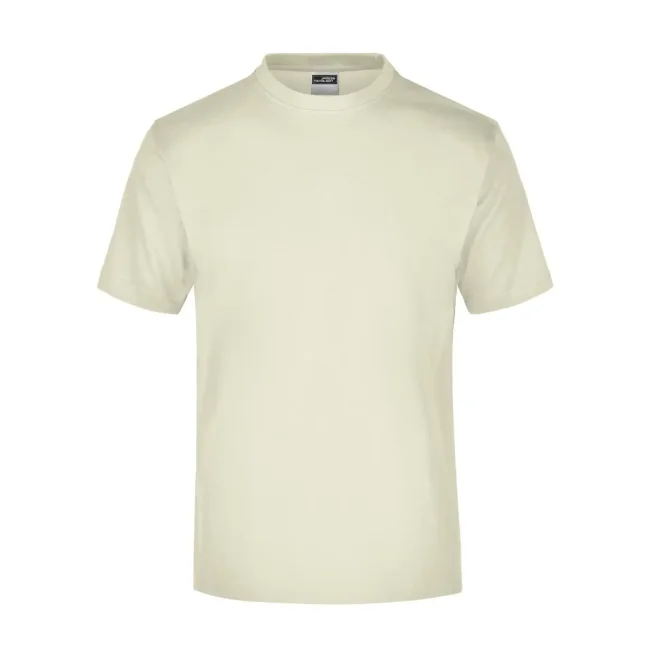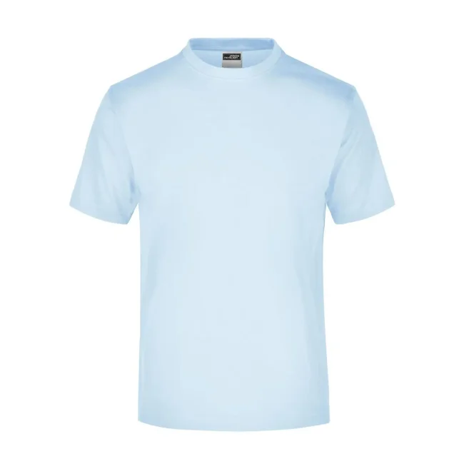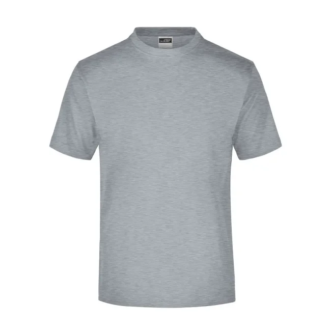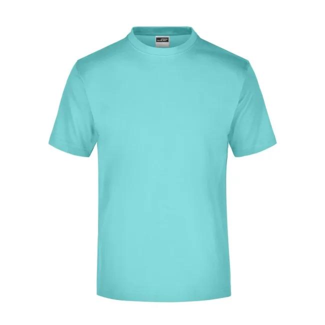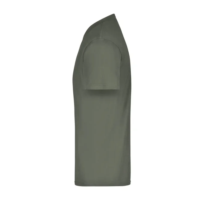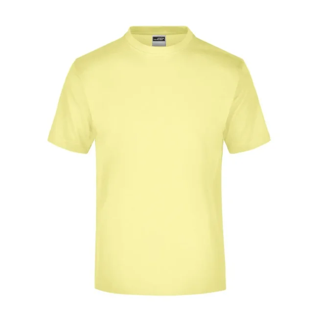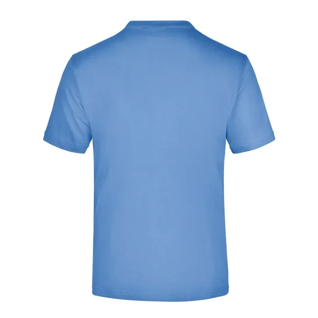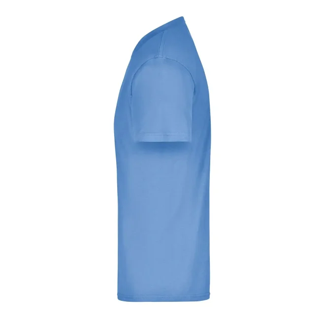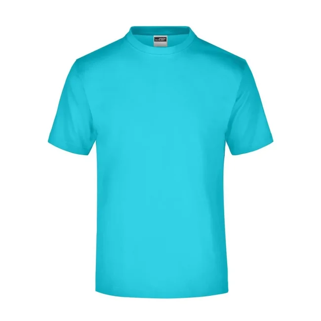 100% cotone. Comoda T-shirt in single jersey, collo rotondo con elastan, senza cuciture laterali, necktape, cuciture doppie sulle spalle, sul collo e sul giro manica.Tessuto esterno (150 g/m²). Manica corta,senza cuciture laterali